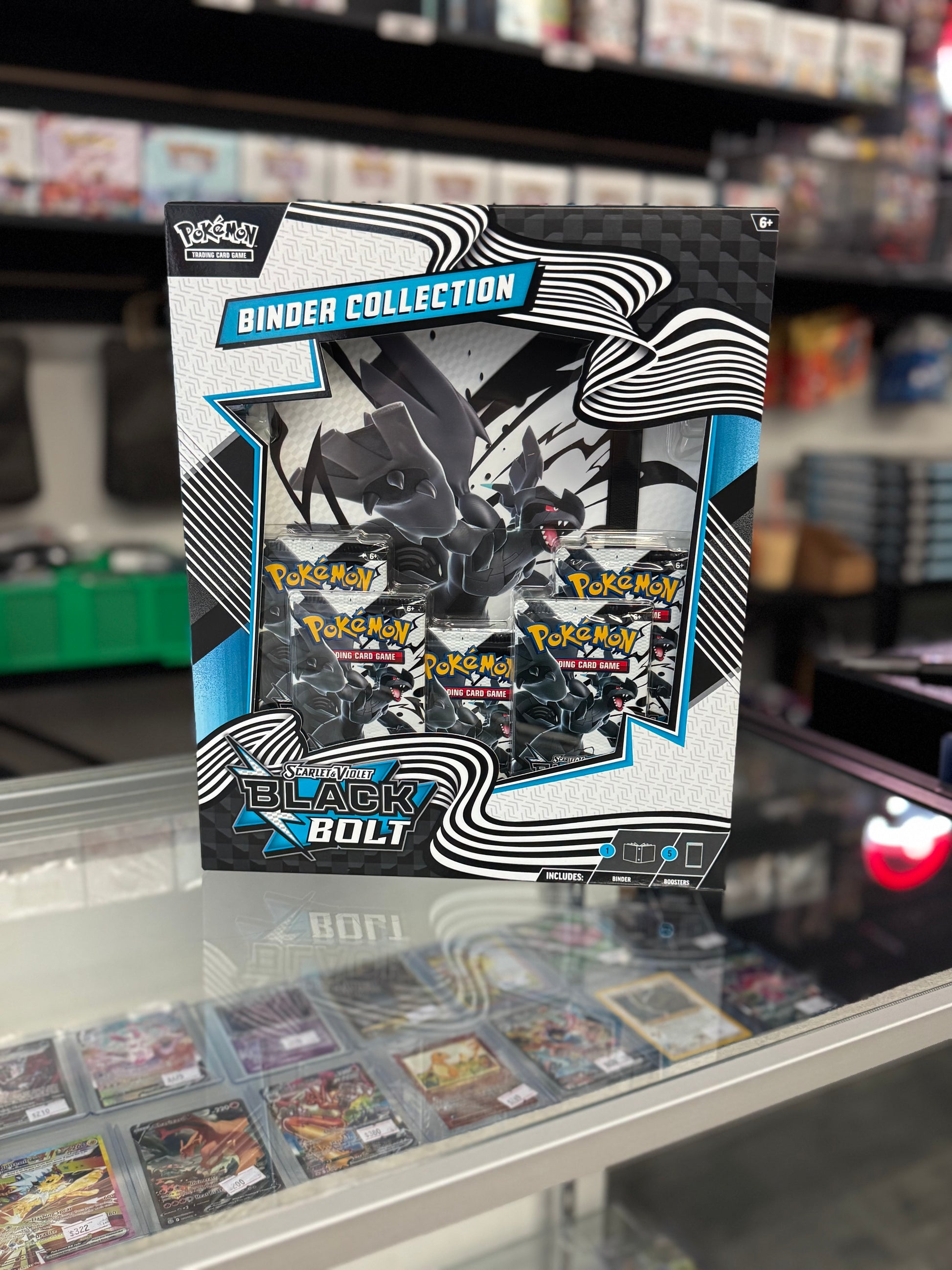 Includes five Scarlet & Violet—Black Bolt or Scarlet & Violet—White Flare booster packs, respectively; and one nine-pocket album featuring Zekrom or Reshiram, respectively, to organize and store Pokémon TCG cards.