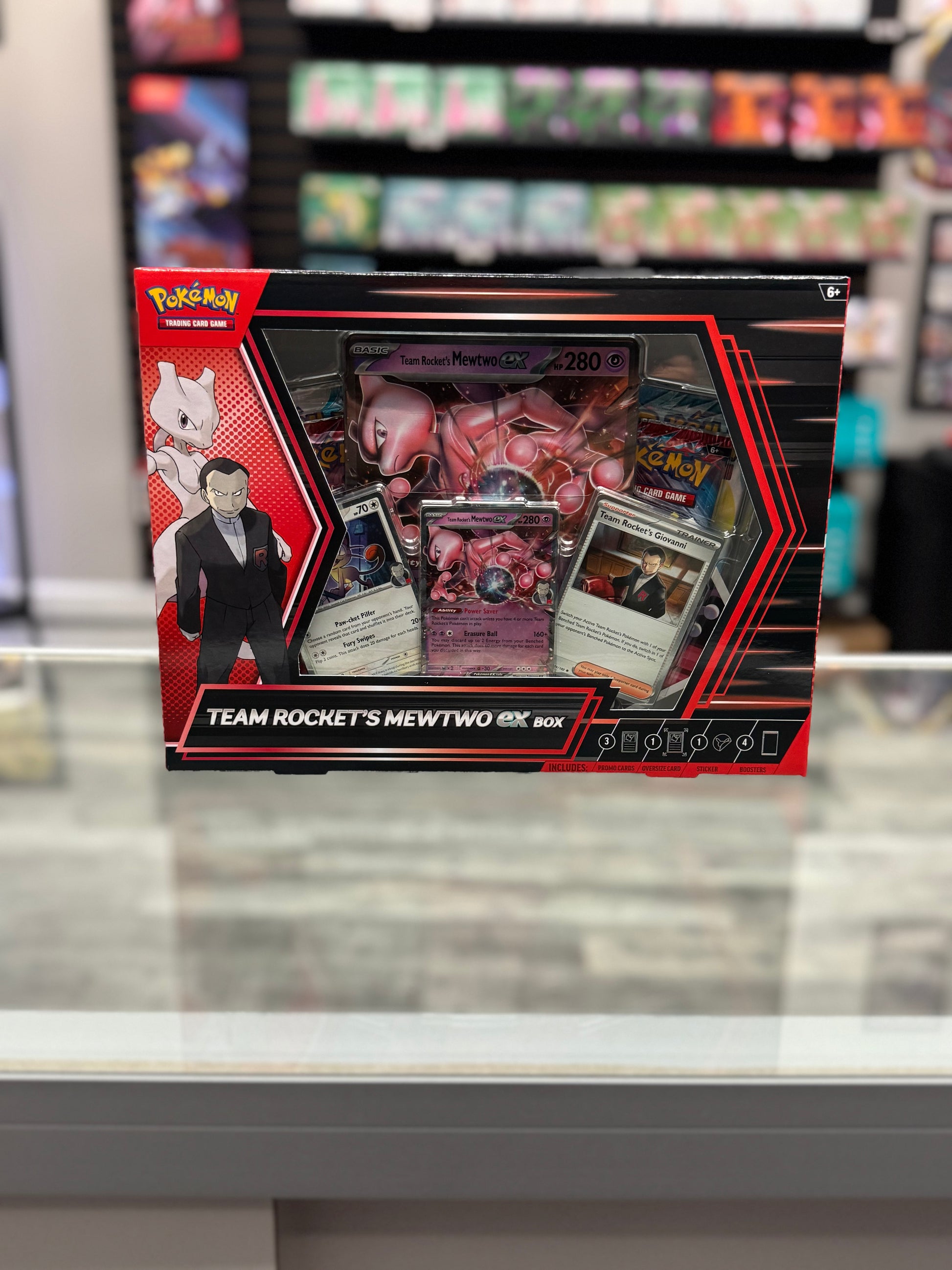 • 1 oversize foil card featuring Team Rocket's Mewtwo ex